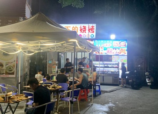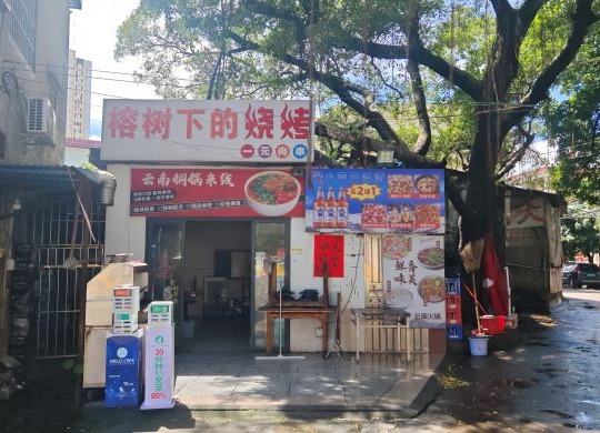 本店地处两条路路口,店铺面积50方,内摆4张台,外摆面积大,可摆4人位8张台。月租2300。目前在经营烧烤店,日均2000+,烧烤毛利高,利润高。有一大批稳定老客户,生意波动不大。对面大型商场今年开业,有酒吧街,前景很好。由于目前只做了烧烤和米线,加品后上升潜力大。